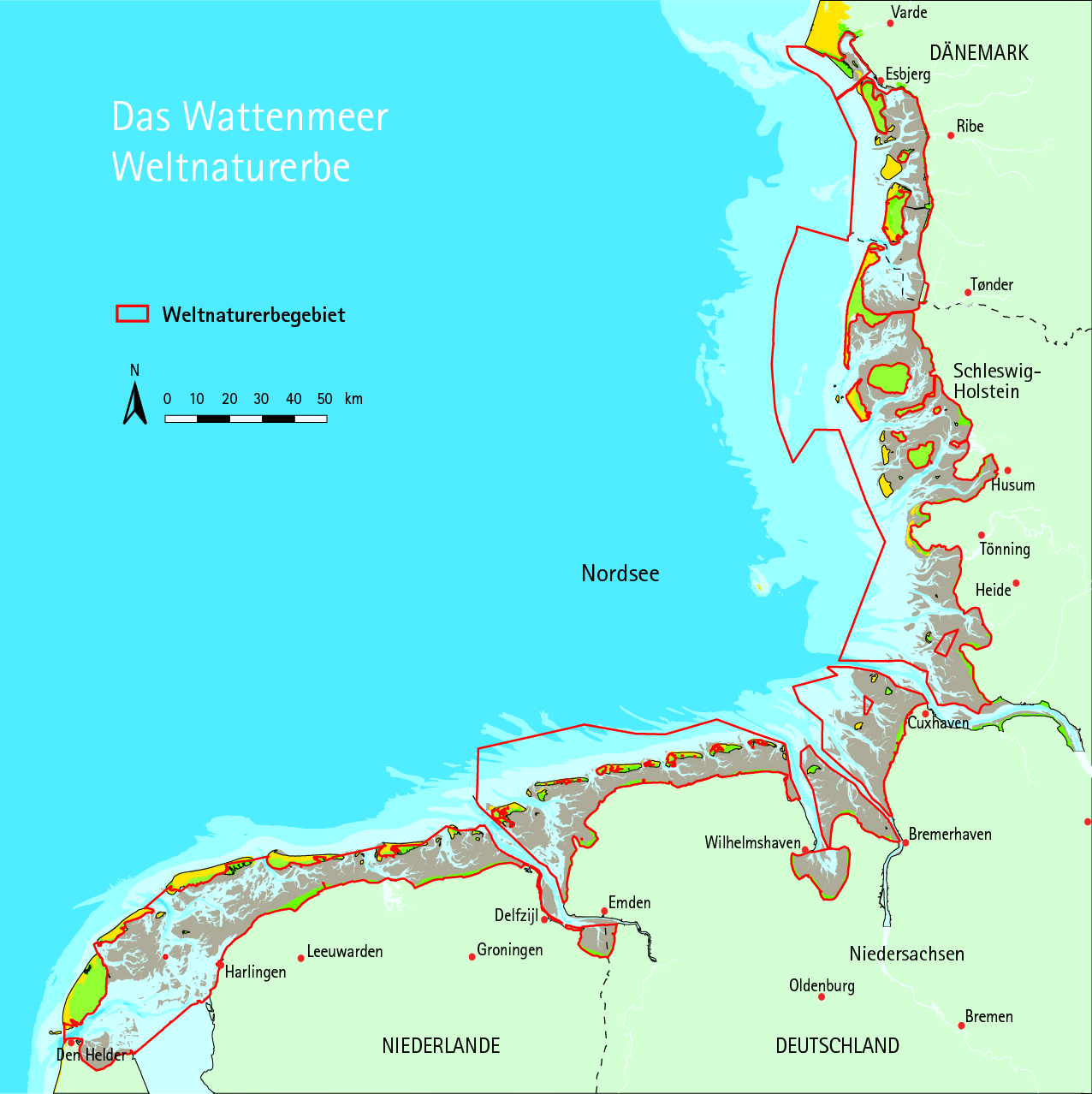 Das UNESCO-Welterbekomitee hat auf seiner Sitzung in Doha, Katar, am Montagmittag entschieden, das Weltnaturerbe Wattenmeer mit dem dänischen Teil des Wattenmeeres und zusätzlichen deutschen Offshore-Gebieten zu erweitern. Damit ist das gesamte Wattenmeer jetzt Weltnaturerbe. „Naturschutz darf an Grenzen nicht haltmachen. Aus diesem Grund freue ich mich sehr, dass das Weltnaturerbe Wattenmeer nun komplett ist“, sagte der Niedersächsische Minister für Umwelt, Energie und Klimaschutz Stefan Wenzel nach der Entscheidung. „Das Ökosystem Wattenmeer braucht eine gemeinsame Strategie zum Schutz und zur Entwicklung dieser weltweit einzigartigen Naturlandschaft."