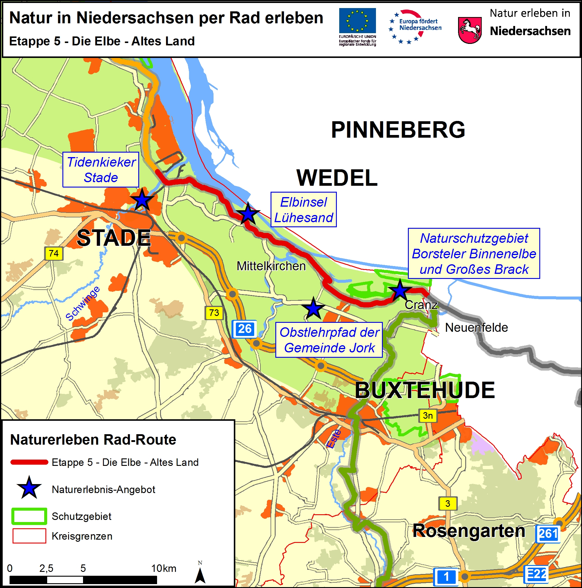 Hinweise zur RouteDie Etappe ist 36 Kilometer lang und liegt im Landkreis Stade.