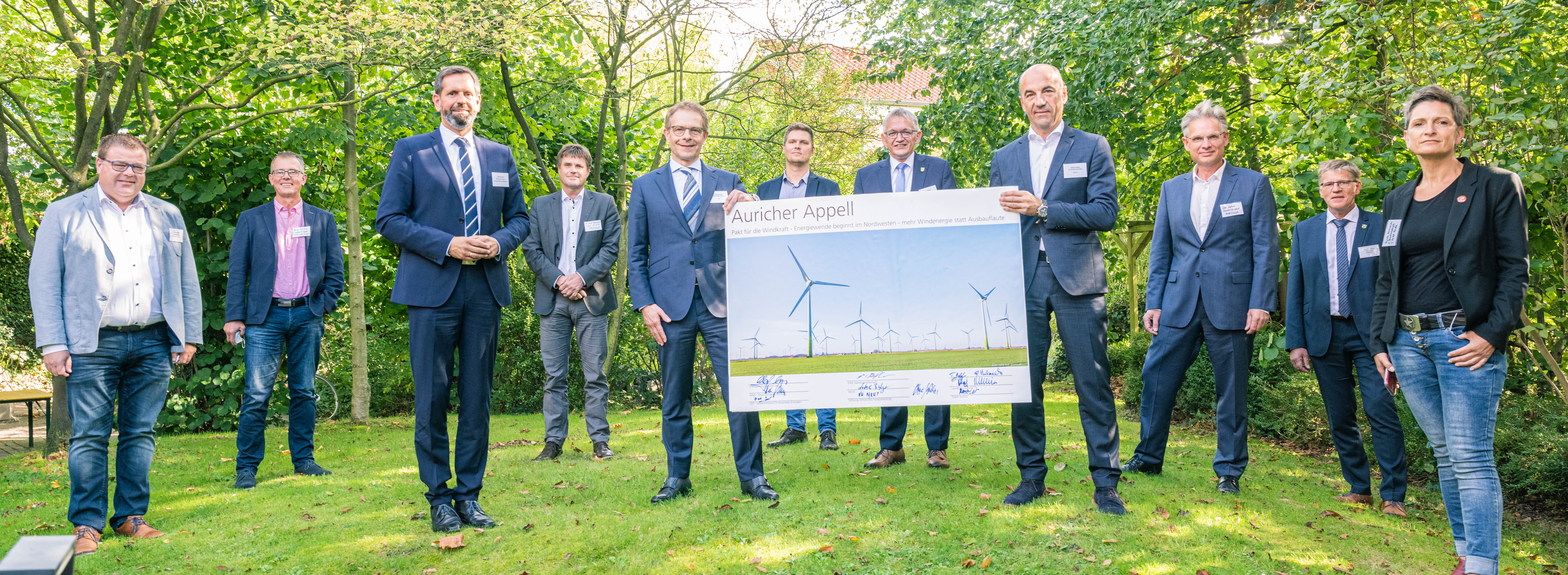 Dass der Energieminister, die EWE AG, die Aloys Wobben Stiftung, die IG Metall, Verdi, der Landrat, Bürgermeister, die Stiftung Offshore Windenergie, der Landesverband Erneuerbare Energien und der Bundesverband Windenergie mit ihrer Unterschrift Seite an Seite kämpfen, hat es in der Geschichte noch nicht gegeben. „Ich danke allen“, so Lies. „An dieser Auricher Koalition der Entschlossenen kommt in Zukunft niemand politisch vorbei. Davon bin ich fest überzeugt.“ Denn alle Unterzeichner seien einig: „An den Zielen und Forderungen des Auricher Appells lassen wir nicht rütteln.“