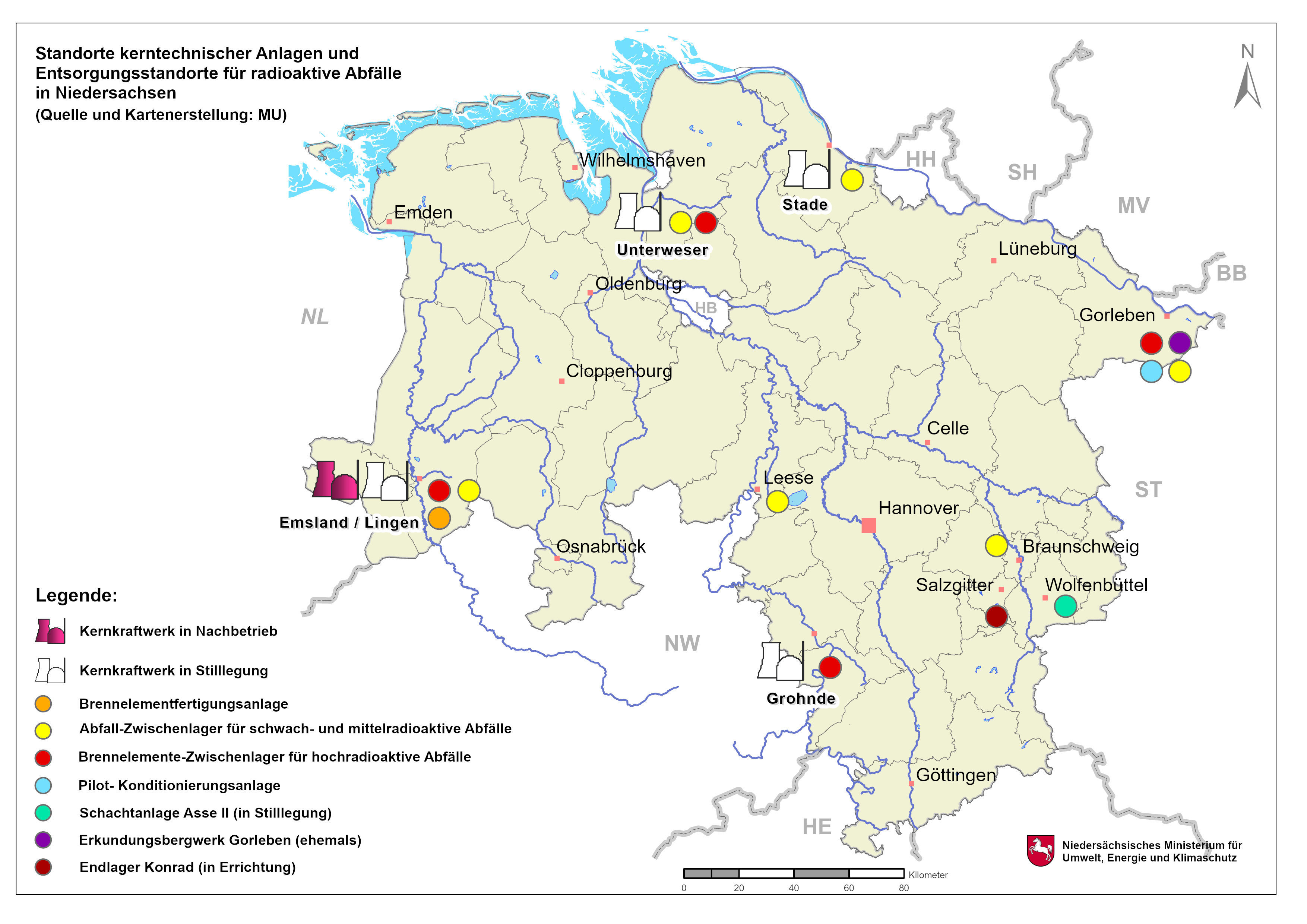 Kerntechnische Anlagen und Entsorgungsstandorte in Niedersachsen
