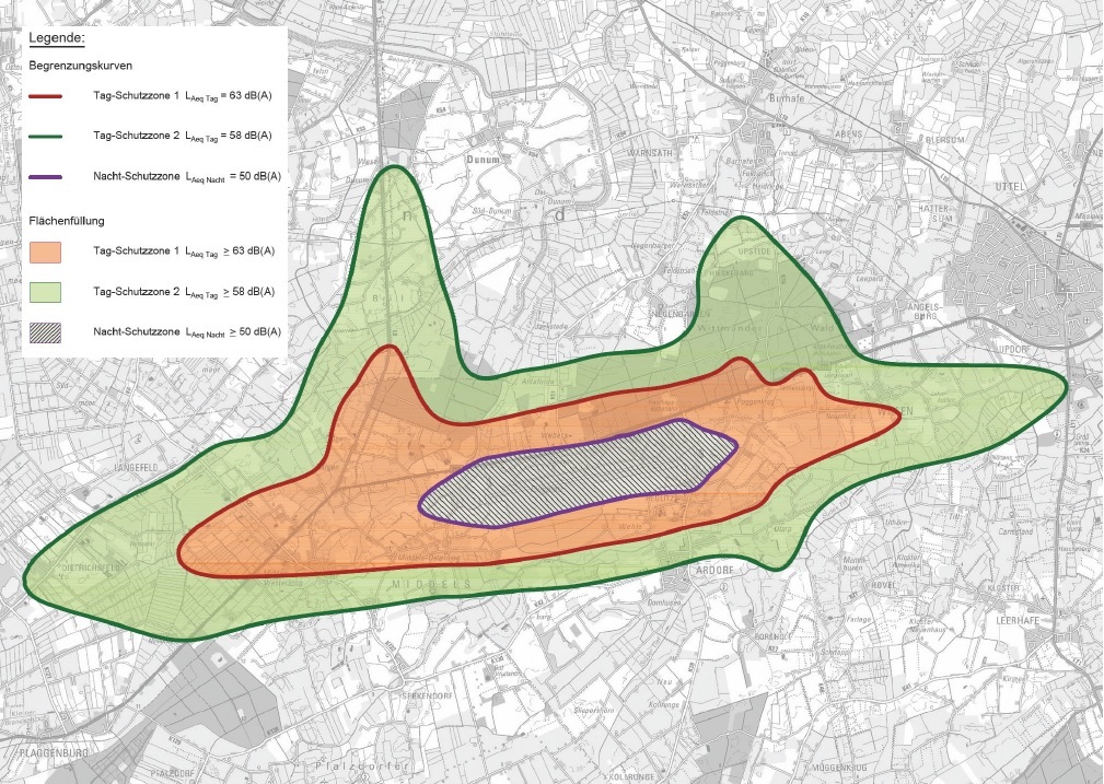 Infolge der Überprüfung war der Lärmschutzbereich neu zu berechnen und festzulegen.