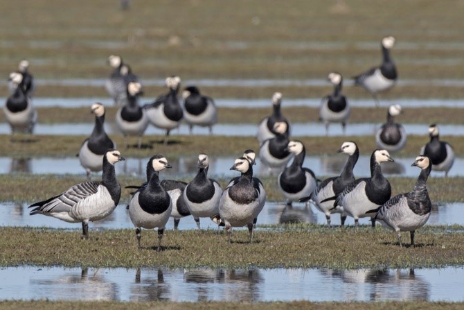 Auf Dauergrünlandflächen sollen insbesondere Nonnen- und Blässgänse aber auch Wiesenvögel wie Uferschnepfe, Rotschenkel, Bekassine und Kiebitz gefördert werden.