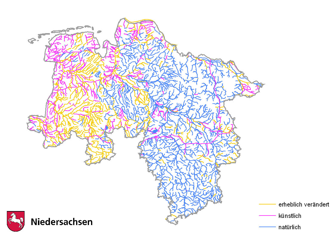 Im Rahmen der Bestandsaufnahme sind entsprechende vorläufige Ausweisungen als "erheblich veränderte Gewässer" insbesondere in den westlichen und nördlichen Landesteilen Niedersachsens vorgeschlagen worden.